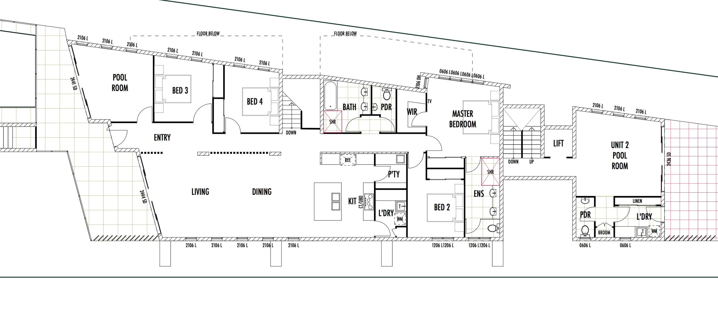 Unit 1 can be accessed from the street level or from the garage and seamlessly blends swimming pool and outdoor entertaining with lounge, dining and kitchen.
